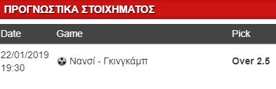 Ομάδες που έχουν θέμα στο γκολ, εξ’ ου και η απόδοση του over, ωστόσο θεωρώ πως η μία μπορεί να ξεκλειδώσει την άλλη και μαζί να κάνουν ένα πολύ παραγωγικό παιχνίδι. Η Νανσί τον τελευταίο καιρό κουτσά-στραβά το βρίσκει ένα γκολ, ενώ η Γκινγκάμπ προέρχεται από την βαριά ήττα κόντρα στην Παρί (9-0) και χωρίς να έχει κάνει τελικές σίγουρα θα επιδιώξει να πάρει λίγη από την πικρία που νιώθουν εδώ και μερικά 24ωρα οι οπαδοί της, που βεβαίως θα έχουν να το λένε στους Παριζιάνους για τον αποκλεισμό στο Λιγκ Καπ -που προφανώς θα πάρει περισσότερο βάρος από το CDF μιας και η Γκινγκάμπ βρίσκεται στα ημιτελικά.
