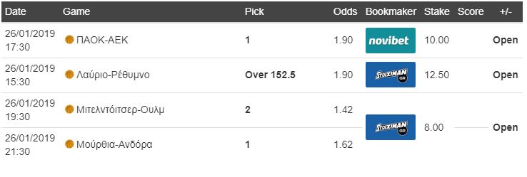 Τέλος, θα επιλέξουμε μία δυάδα από τη Ισπανία και τη Γερμανία. Στην ACB, η Μούρθια υποδέχεται την Ανδόρα με τους γηπεδούχους να ψάχνουν τη νίκη που θα τους απομακρύνει από τις τελευταίες θέσεις του βαθμολογικού πίνακα. Επιλέγουμε τον άσο σε απόδοση 1.62. Στην BBL, η Ουλμ δοκιμάζεται στην έδρα της Μιτελντόιτσερ και αν παρουσιαστεί όπως στο προ μιας εβδομάδας παιχνίδι ανάμεσα στις δύο ομάδες, όταν και προηγήθηκε ακόμα και με διαδορά 28 πόντων, τότε μπορεί να πάρει την εκτός έδρας νίκη και να μας δώσει το 1.42.