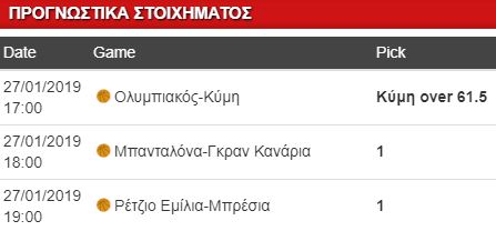 Αρχίζουμε με την Basket League και τον αγώνα του Ολυμπιακού με την Κύμη. Οι «ερυθρόλευκοι» φυσικά και θα φτάσουν στη νίκη, αλλά δεν χρειάζεται να βγάλουν στην επιφάνεια όλο το επιθετικό τους ταλέντο για να πάρουν το ροζ φύλλο. Το line για τους 61.5 πόντους των φιλοξενουμένων είναι πολύ χαμηλό και θα επιλέξουμε το over σε απόδοση 1.83 για μια ομάδα που έχει ενισχυθεί με ποιοτικούς Αμερικανούς που μπορούν να πάρουν σκορ με προσωπικές ενέργειες.