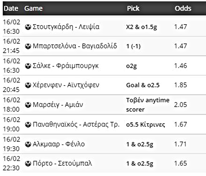 Πολλά τα ματς του σημερινού κουπονιού, πολλές και οι στοιχηματικές επιλογές της ημέρας (16/2) από τον Βαγγέλη Μπραουδάκη.