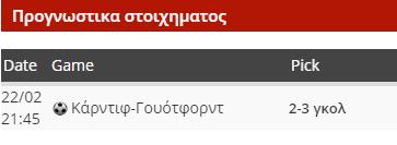 Το κακό για την Κάρντιφ είναι ότι η Γουότφορντ την άλλη Τετάρτη παίζει εκτός έδρας με τη Λίβερπουλ, το αποψινό λοιπόν είναι λογικά το ματς που μπορεί να χτυπήσει, τα πάει μια χαρά και στην Πρέμιερ, είναι στην 8η θέση. 3-2 είχε επικρατήσει στον πρώτο γύρο η Γουότφορντ κι ο Νιλ Γουόρνοκ της Κάρντιφ ξέρει ότι αν ανοίξει το ματς θα είναι σε βάρος της ομάδας του, δύσκολα θα αποφύγει την ήττα. Δύσκολο δείχνει να μείνει χωρίς σκορ το παιχνίδι, στα 2-3 γκολ είναι και τα 4 τελευταία παιχνίδια των Ουαλών, τα 5 στα 6 τελευταία στην Πρέμιερ είναι στα 2-3 γκολ, ενώ κλειστά είναι τελευταία και τα ματς της Γουότφορντ.