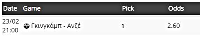 Εμπιστοσύνη στη... φόρα της Γκινγκάμπ δείχνει Γιώργος Σιάφας από το σημερινό (23/2) στοιχηματικό κουπόνι.