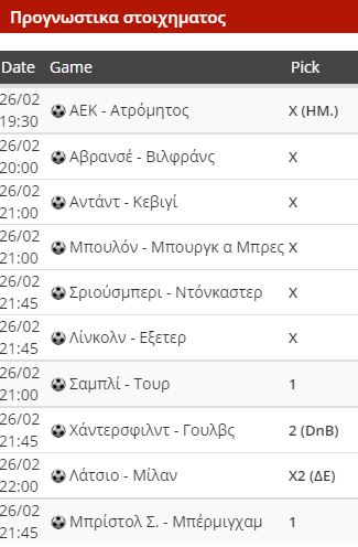 Δεν ακούμπησα τον διπλό ημιτελικό Κυπέλλου Πόρτο – Μπράγκα, ακριβώς επειδή είναι διπλός, παρότι οι φιλοξενούμενοι δείχνουν να έχουν πάρει τον κατήφορο (0-5 γκολ στις δύο πρόσφατες σερί ήττες από Σπόρτινγκ και Μπελενένσες)! Οι δράκοι έχουν μπροστά τους το ντέρμπι με την Μπενφίκα για το πρωτάθλημα κι αμέσως μετά υποδέχονται τη Ρόμα στη ρεβάνς του 1-2 για το Τσάμπιονς Λιγκ. Αν τους βγει το ματς, καλώς, ειδάλλως δεν θα σκοτωθούν κιόλας…