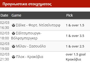 Στη Γερμανία, το… πτώμα της Σάλκε χαροπαλεύει για να μην πάθει ζημιά και αναζητά πάση θυσία τους βαθμούς της νίκης. Η ομάδα του Τεντέσκο (που παίζει το κεφάλι του) προβληματίζει σταθερά τον τελευταίο καιρό και αγνοεί τη χαρά στο πρωτάθλημα από τις 20/1. Σήμερα παίζει «τελικό» επιβίωσης κόντρα στην Ντίσελντορφ και η νίκη μοιάζει μονόδρομος. Παρότι μας έχει «κάψει» αρκετές φορές της δίνουμε για τελευταία φορά ψήφο εμπιστοσύνης. Η επιλογή εδώ είναι το 1 & over 1.5 που μοιάζει ιδανικό, αν φυσικά η Σάλκε εμφανιστεί όπως πρέπει.