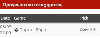 Οι Πορτογάλοι έχασαν από τη Μπενφίκα εντός έδρας (1-2) και απώλεσαν την πρωτιά, ενώ οι «Τζιαλορόσι», ηττήθηκαν στο ντέρμπι μίσους της «αιώνιας πόλης» από τη Λάτσιο (3-0). Δεν είναι ομάδες που θα αμυνθούν και τα προβλήματά τους στα μετόπισθεν θα κάνουν την εμφάνισή τους. Πιθανό ξανά το αμφίσκορο, κρατάμε σε λίγο υψηλότερη απόδοση το over 2.5 γκολ.