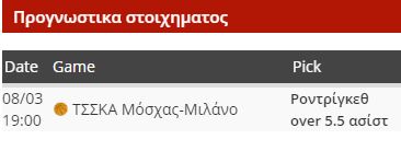Το δεύτερο πιάτο της 25ης αγωνιστικής της Ευρωλίγκας «σερβίρεται» σήμερα και εμείς θα ασχοληθούμε με ένα ειδικό στοίχημα που προκύπτει από τον αγώνα της ΤΣΣΚΑ Μόσχας με το Μιλάνο. Θυμίζουμε, βέβαια, ότι είναι ανοιχτή η χθεσινή μας επιλογή, όπου επιλέξαμε ότι ο Παναθηναϊκός θα σκοράρει 4 περισσότερους πόντους από τον Ολυμπιακό στην 25η αγωνιστική, οπότε θα επιβεβαιωθεί αν οι «ερυθρόλευκοι» σκοράρουν κάτω από 88 πόντους.