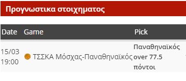 Με ένα ειδικό στοίχημα από τον αγώνα της ΤΣΣΚΑ Μόσχας με τον Παναθηναϊκό για την 26η αγωνιστική της Ευρωλίγκας θα ασχοληθούμε σήμερα. Έχουμε ανοιχτό φυσικά και το fantasy από χθες, το οποίο, όμως μοιάζει χαμένο, καθώς για να επιβεβαιωθεί πρέπει να πετύχουν οι «πράσινοι» 104 πόντους…