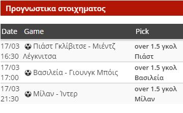 Στην Πολωνία, το… τρένο της Πιάστ Γκλίβιτσε υποδέχεται την Μιέντζ Λέγκνιτσα. Οι γηπεδούχοι πηγαίνουν με σπασμένα φρένα το τελευταίο διάστημα και προέρχονται από τέσσερις σερί νίκες. Βαθμολογικά βρίσκονται στην τρίτη θέση και θέλουν να παραμείνουν κοντά στην κορυφή. Σήμερα είναι το φαβορί κόντρα στους νεοφώτιστους, οι οποίοι την Πέμπτη έπαιξαν παιχνίδι Κυπέλλου και ίσως εμφανίσουν σημάδια κούρασης. Πάμε με την επιλογή που μας πάει και τα δύο γκολ και πάνω σε απόδοση κοντά στον διπλασιασμό.