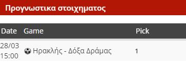 Στο σημερινό κουπόνι, υπάρχει η ενδιαφέρουσα αναμέτρηση για τη Football League, ανάμεσα στον Ηρακλή και τη Δόξα Δράμας. Πάση θυσία τη νίκη θέλει ο «Γηραιός», που έχει χάσει έδαφος στη βαθμολογία και είναι κοντά στην επικίνδυνη ζώνη. Μετά την εκτός έδρας ήττα στην Άρτα από τον Καραϊσκάκη (1-0), αποτέλεσε παρελθόν ο προπονητής Μανουέλ Ρόκα, στη θέση του αναλαμβάνει ο Μαρσέλο Τροΐζι. Παρά το γεγονός ότι η Δόξα Δράμας, είναι σε καλή κατάσταση, η αλλαγή σκυτάλης στον πάγκο του Ηρακλή μπορεί να του δώσει την απαιτούμενη ώθηση για τους τρεις βαθμούς. Άσος.