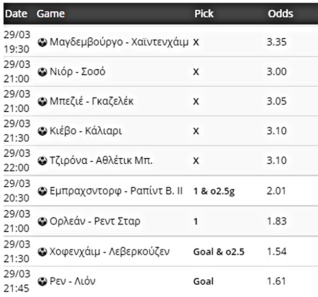 Τα εγχώρια πρωταθλήματα επανεκκινούν και ο Βαγγέλης Μπραουδάκης κάνει τις προβλέψεις του για το σημερινό (29/3) στοιχηματικό κουπόνι.