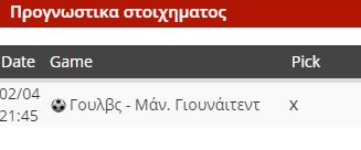 Μ’ αρέσει να κινούμαι ανάμεσα σε Αγγλία και Γαλλία και δεν μπορώ παρά να ξεχωρίσω το ματς της Γουλβς με την Μάντσεστερ Γιουνάιτεντ. Υπάρχει και το Λυών – Ρεν για τα ημιτελικά του Coupe de France όπου το GG & over μου κάνει λογικό, αλλά υπό το ενδεχόμενο ενός ματς σκοπιμότητας μέχρι τέλους θα το αφήσω στην άκρη και δεν θα ασχοληθώ pregame.