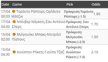 Ή τελευταία μας επιλογή έρχεται από το ζευγάρι των Χιούστον Ρόκετς με τους Γιούτα Τζαζ. Οι Ρόκετς που θέλουν να φτάσουν όσο το δυνατόν πιο μακριά γίνεται στα φετινά playoffs, ξέρουν πολύ καλά ότι για να έχουν τύχη κόντρα στους Γκόλντεν Στέιτ Ουόριορς, οι οποίοι θα προκριθούν κατά πάσα πιθανότητα θα «σκουπίσουν» τους Κλίπερς (ή τέλος πάντων θα περάσουν χωρίς να ιδρώσουν), θα πρέπει να ξεπεράσουν το εμπόδιο των Τζαζ χωρίς να ξοδέψουν πολύ ενέργεια. Για αυτόν τον λόγο επιλέγω την πρόκριση των Ρόκετς με χάντικαπ -1.5 νίκης σε απόδοση 2.10. Αυτό σημαίνει ότι η επιλογή θα επιβεβαιωθεί με πρόκριση των Ρόκετς, αρκεί να μην χρειαστεί έβδομο ματς.