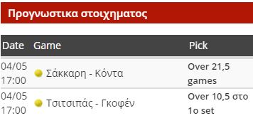 Οι προτάσεις του Νίκου Καπίρη από το σημερινό κουπόνι και το τένις, με Μαρία Σάκκαρη και Στέφανο Τσιτσιπά.