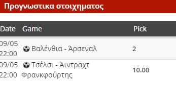 Ξεκινάω από το Βαλένθια – Άρσεναλ, με τον μετρ του Europa League, Ουνάι Έμερι, να βλέπει την ομάδα του να έχει σαφές προβάδισμα μετά το 3-1 του πρώτου ματς. Οι νυχτερίδες πήραν προβάδισμα στο Emirates αλλά σύντομα το πλήρωσαν και απόψε καλούνται να βρουν γκολ για να εξαντλήσουν τις πιθανότητές τους. Όπως φάνηκε και στον πρώτο αγώνα, αλλά και από την σειρά αγώνων κόντρα στη Νάπολι, οι Λονδρέζοι την παίρνουν σοβαρά την διοργάνωση και έχουν την ποιότητα για να φτάσουν μέχρι το τέλος της διαδρομής. Η άμυνα δεν είναι το δυνατό τους σημείο οπότε θα πρέπει να αντέξουν στην αρχή και κατά την γνώμη μου να δοκιμάσουν να βρουν το γκολ που θα ξενερώσει οριστικά τους γηπεδούχους. Τετραπλασιασμός στο διπλό; Θα ρισκάρω.