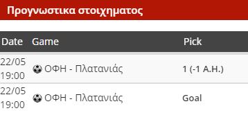 Πέραν των παραπάνω, ωστόσο, υπάρχουν ακόμα δύο δεδομένα που πιθανώς να επηρεάσουν την έκβαση της αναμέτρησης. Πρωτίστως η αναγκαστική αποδιοργάνωση της άμυνας του ΟΦΗ, καθώς (θα) λείπουν τα 3/4 της -πέραν των στόπερ Ποτουρίδη, Μιχόγεβιτς και ο Γιαννούλης που συμπλήρωσε κάρτες- και δευτερευόντως η ικανότητα των Χανιωτών στην κόντρα (ο Ουες δημιούργησε προβλήματα πλαγιοκοπώντας και στα Περβόλια). Υπ’ αυτές τις συνθήκες ο σχεδόν τριπλασιασμός για αμφίσκορο μου μοιάζει υπερβολικός κι αξίζει το (συμπληρωματικό) ρίσκο…