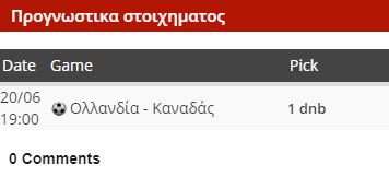 Αν ο Καναδάς βολευόταν με την ισοπαλία τότε θα πόνταρα υπέρ του, αφού έχει τον τρόπο να παίρνει αυτό που θέλει μέσω της αμυντικής τακτικής. Ωστόσο απόψε θέλει νίκη και η Ολλανδία μπορεί να τιμωρήσει κάθε κενό χώρο που θα βρει. Έχει πολλές πιθανότητες και η ισοπαλία βέβαια, οπότε θα γίνει παιχνίδι με το dnb των τυπικά γηπεδούχων.