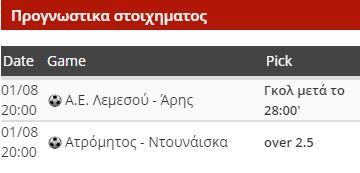 Στο Περιστέρι, η Ντουνάισκα δεν ξέρει να παίζει άμυνα, θα βγει να επιτεθεί και μπορεί να το κάνει «ροντέο». Ικανότατος επιθετικά ο Ατρόμητος, θα βάλει γκολ, αλλά ένα τουλάχιστον μπορεί να το δεχθεί. Πάμε στο over 2.5 σε τιμές διπλασιασμού.