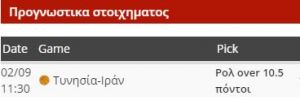 Η επιλογή μας θα αφορά τον γκαρντ της Τυνησίας, Μάικλ Ρολ, τον ποιοτικότερο-μαζί με τον αμφίβολο σήμερα Σαλάχ Μεϊρι- παίκτη των Αφρικανών. Ο γκαρντ της Αρμάνι Μιλάνο ήταν κακός στο ματς με την Ισπανία (8 πόντοι), αλλά πήρε 10 σουτ και θεωρώ ότι θα τα ξαναπάρει. Είναι ο ποιοτικότερος περιφεριακός της Τυνησιας και είναι ικανός να πετύχει πάνω από 10.5 πόντους στο ματς με το Ιράν. Η επιλογή μας δίνεται σε απόδοση 1.87.