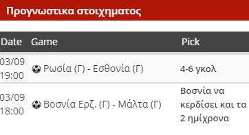 Για τα δεδομένα της, η μάχη με τη Σλοβενία είχε χαμηλό σκορ. Γενικότερα βέβαια η Ρωσία δεν φέρνει υψηλά σκορ. Εξ’ ου και μας φαίνεται κάπως υψηλό το 2.40 στο Under 5,5 γκολ. Μιλάμε ότι πρέπει να πετύχει 6 γκολ κόντρα στην αδύναμη Εσθονία. Για να καταλάβατε, η φιναλίστ του πρόσφατου Παγκοσμίου Κυπέλλου, Ολλανδία είχε απέναντι στις Εσθονές 33 τελικές προσπάθειες και νίκησε 7-0. Τα δύο μάλιστα τελευταία γκολ σημειώθηκαν στο 81’ και στο 85’. Δηλαδή το πάλεψε μέχρι τέλους.