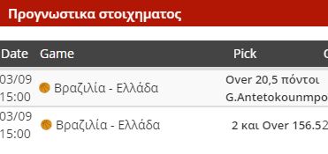 Επομένως, ποντάρουμε στο Over 20,5 πόντων του Γιάννη στο Stoiximan και στη νίκη της Ελλάδας σε συνδυασμό με Over 156.5 συνολικών πόντων στην Novibet!