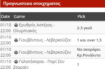 Η Παρί δεν είναι στα καλύτερα της και ο Νειμάρ που την ξελασπώνει ακατάπαυστα τον τελευταίο μήνα, απόψε είναι εκτός λόγω της τιμωρίας του. Δεν πρέπει να ξεγελάει το 3-0 στην πρεμιέρα με την Ρεάλ καθώς ήταν ένα ματς ιδιαίτερων συνθηκών με πολλές απουσίες για τη Βασίλισσα. Η Γαλατά ζει γι’αυτά τα ματς, είναι ξανά η καλύτερη ομάδα στην Τουρκία και το γήπεδο θα κοχλάζει. Το ματς προσφέρεται για πολλούς συνδυασμούς αλλά με τρώει να παίξω το funbet του «ξερού» άσου με πολύ μικρά stakes φυσικά καθώς η απόδοση είναι στο 8.50!