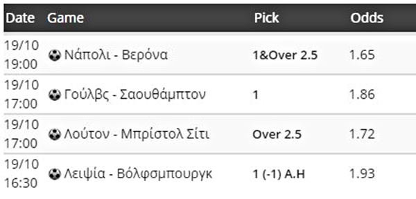 Το ματς της Νάπολι ξεχωρίζει στις σημερινές (19/10) στοιχηματικές επιλογές του Λάμπρου Λυριτζή