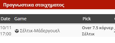 Δεδομένη η προσοχή στην άμυνα και η πίεση που αναμένεται να ασκήσουν οι γηπεδούχοι. Πίεση που μπορεί να φέρει κόρνερ, η Σέλτικ κερδίζει αρκετά στην έδρα της, 8 μας είναι αρκετά, με το Over 7.5 κόρνερ για τη Σέλτικ στο 2.10.