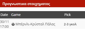 Πάμε στην Αγγλία για τον αγώνα Μπέρνλι-Κρύσταλ Πάλας, όσοι είστε πιστοί αναγνώστες της στήλης θα καταλάβατε ότι και αυτό το Σάββατο είναι Σάββατο της… Μπέρνλι. Η αγαπημένη ομάδα της στήλης, μιας και έχει τη συνήθεια να φέρνει τα 2-3 γκολ, μας είχε δικαιώσει και το προηγούμενο Σάββατο, κερδίζοντας 3-0 τη Γουότφορντ. Το 3-0 είναι το σκορ των τριών τελευταίων αγώνων της (μία ήττα, δύο σερί νίκες), έχει φέρει τα 2-3 γκολ στα τρία από τα 4 τελευταία παιχνίδια της.