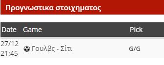 Ολοκληρώνεται η Boxing Day στο Νησί με το παιχνίδι της Σίτι κόντρα στην Γουλβς. Εχθές είδαμε τις Άρσεναλ και Τσέλσι να μην κερδίζουν (με under 2,5!) και την Λίβερπουλ να κάνει… πλάκα μέσο στο σπίτι της Λέστερ. Στα «δικά μας», 0/2 στην πρόταση με τα βέλγικα και σήμερα θα το πάμε με μονή επιλογή.