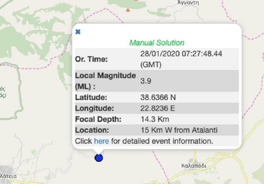 ΕΠΙΚΑΙΡΟΤΗΤΑ 28.01.2020-10:15 Σεισμός 3,9 Ρίχτερ στην Αταλάντη Σεισμική δόνηση μεγέθους 3,9 της κλίμακας της Ρίχτερ σημειώθηκε στις 09.27 το πρωί, 15 χιλιόμετρα δυτικά της Αταλάντης. to10