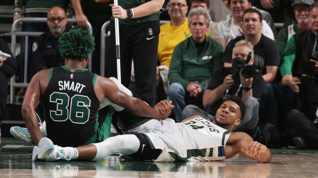 NBA 10.05.2022-16:57 Βράζει ο Σμαρτ με τον Γιάννη: Με κλώτσησε στο κεφάλι (vids) Ο Μάρκους Σμαρτ κατηγόρησε τον Γιάννη Αντετοκούνμπο πως τον κλώτσησε στο κεφάλι κατά την διάρκεια του Game 4 ανάμεσα στους Σέλτικς και τους Μπακς. to10