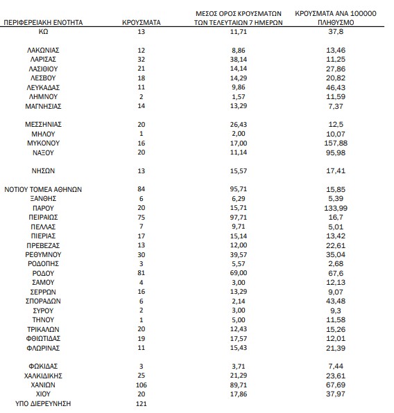 Όπως κάθε μέρα, έτσι και σήμερα η Αττική κατακτά την αρνητική πρωτιά των κρουσμάτων. Την ίδια στιγμή, «πονοκέφαλο» στους ειδικούς προκαλούν αρκετές ακόμα περιοχές της Ελλάδας.