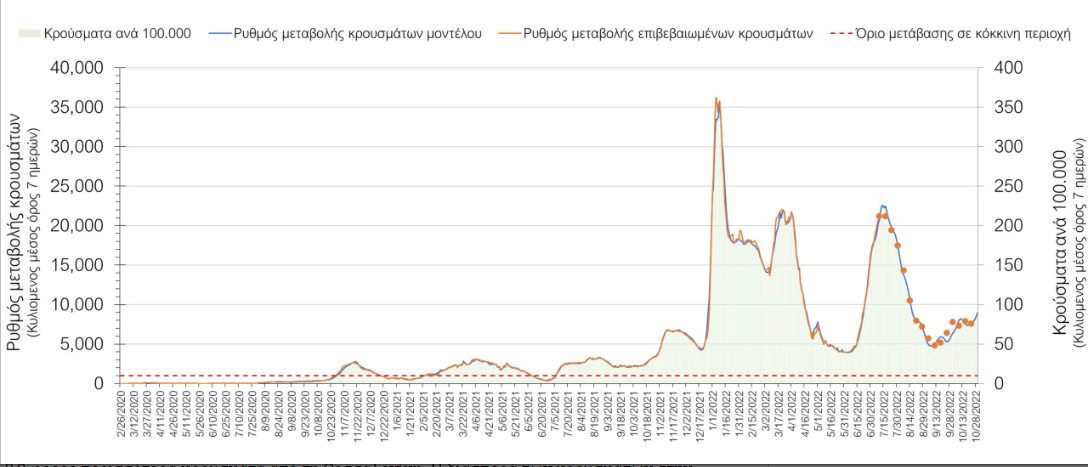 Τις τελευταίες δύο εβδομάδες η κατάσταση είναι σταθερή, όμως τα κρούσματα αναμένεται να ακολουθήσουν αυξητική πορεία λόγω των νέων στελεχών BQ.1 και BQ1.1, δύο νέες ποικιλίες της Όμικρον.