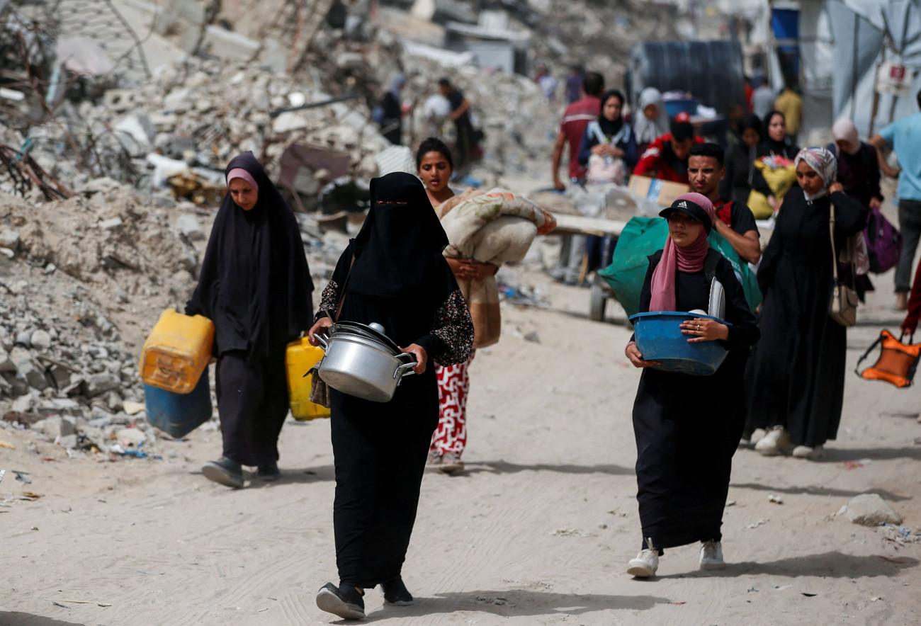 Παλαιστίνιοι και Παλαιστίνιες καθώς μετακινούναι με τα υπάρχοντά τους