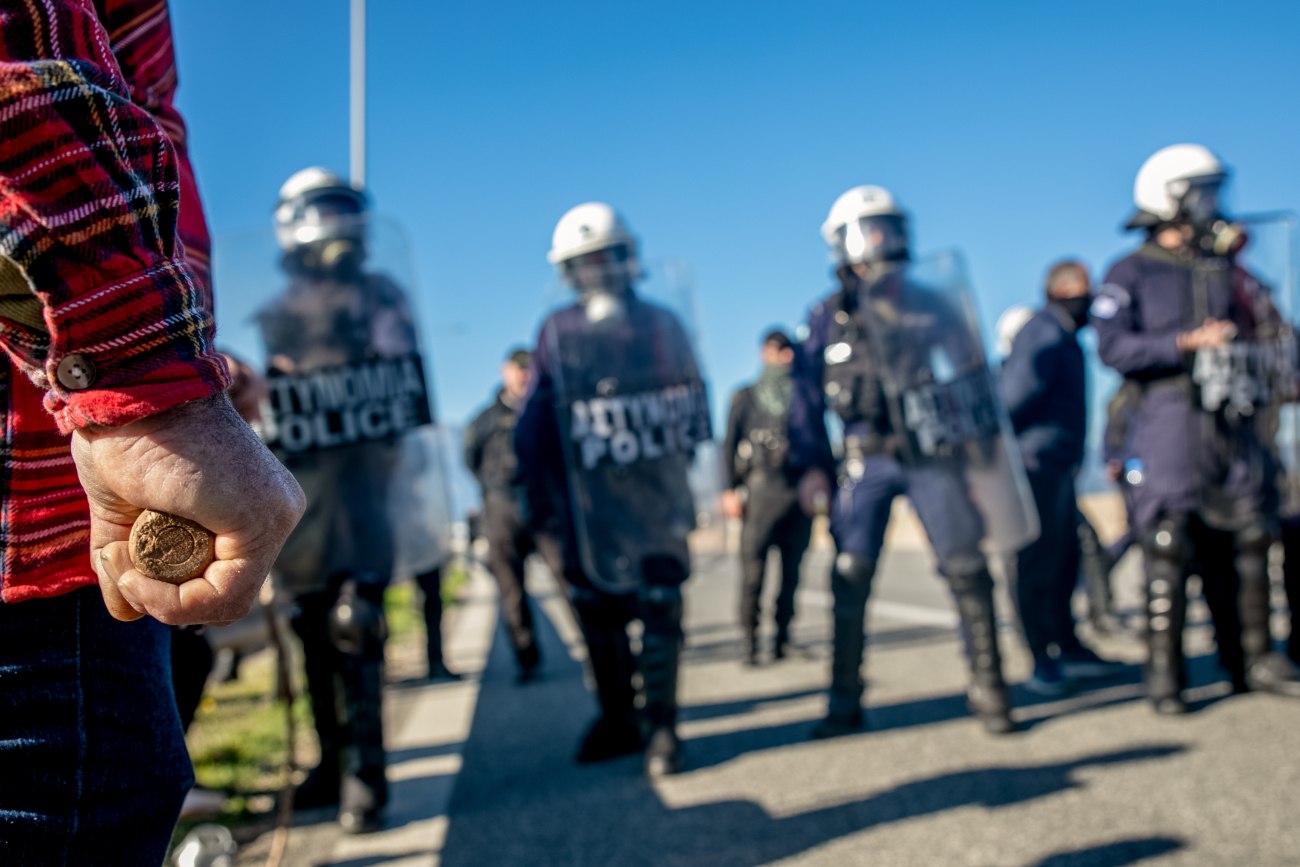 «Είστε επικίνδυνοι» φώναζαν αγρότες και κτηνοτρόφοι προς τις δυνάμεις καταστολής, που εκτόξευαν απειλές για δικογραφία για παρακώλυση συγκοινωνίας, συλλήψεις και φωτογραφίες για ταυτοποίηση στοιχείων.