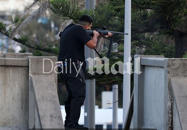 Όπως αναφέρουν αυστραλιανά ΜΜΕ, την ώρα που ένας από τους υπόπτους άνοιξε πυρ κοντά στο πάρκινγκ της Campbell Parade, ο πολίτης κινήθηκε προς το μέρος του. Καθώς οι πυροβολισμοί συνεχίζονταν, άνδρας ντυμένος με μαύρο παντελόνι και λευκό πουκάμισο χρησιμοποίησε σταθμευμένα οχήματα ως κάλυψη, προχωρώντας προσεκτικά μέσα στον χώρο στάθμευσης. Ο άνδρας αρπάζει το όπλο από τον δράστη και να τον ακινητοποιεί πυροβολώντας τον, αν και στη συνέχεια ο τελευταίος τρέπεται σε φυγή.