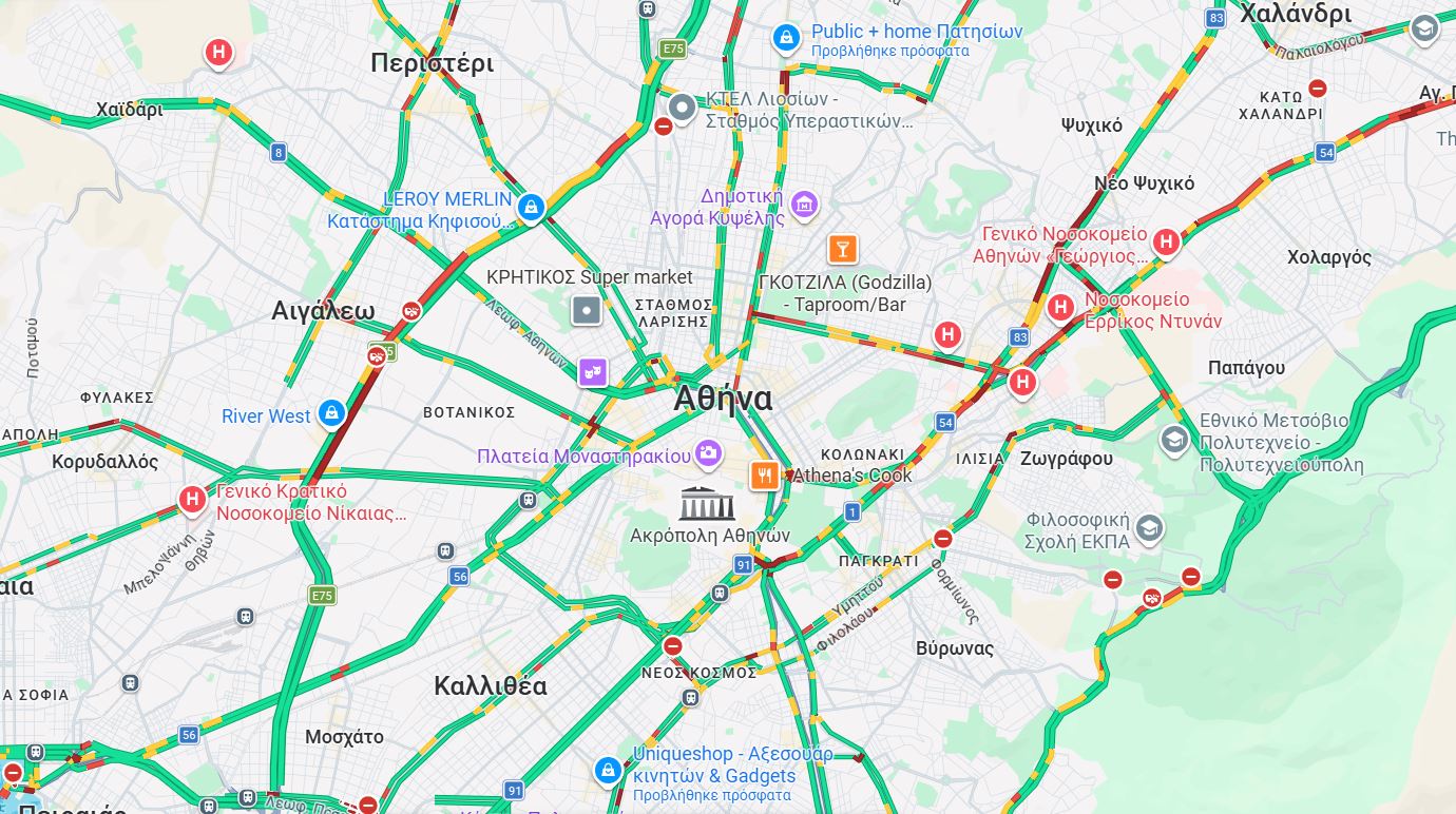 Σημαντικές καθυστερήσεις παρατηρούνται επίσης στη λεωφόρο Κηφισίας, από την Πανόρμου έως το Νέο Ψυχικό, καθώς και κατά μήκος της λεωφόρου Μεσογείων σε άνοδο και κάθοδο.