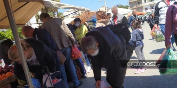 Συνωστισμός επικράτησε το πρωί του Σαββάτου στη λαϊκή αγορά στις Πατέλες του Ηρακλείου Κρήτης ενώ -παρά την καραντίνα – δεν ήταν λίγοι εκείνοι που «γέμισαν» και τα πλυντήρια αυτοκινήτων.