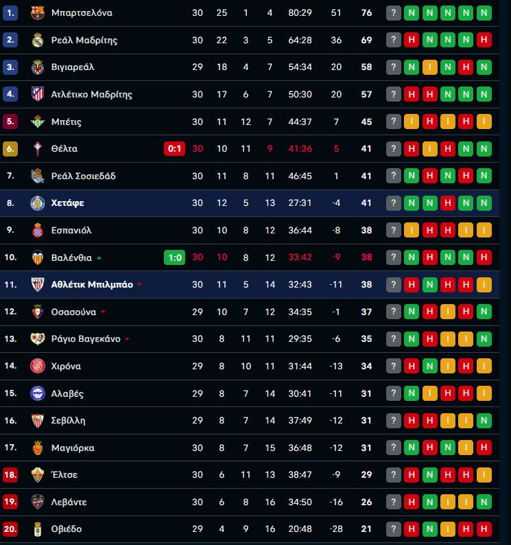 15:00 Χετάφε – Αθλέτικ Μπιλμπάο 2-0
