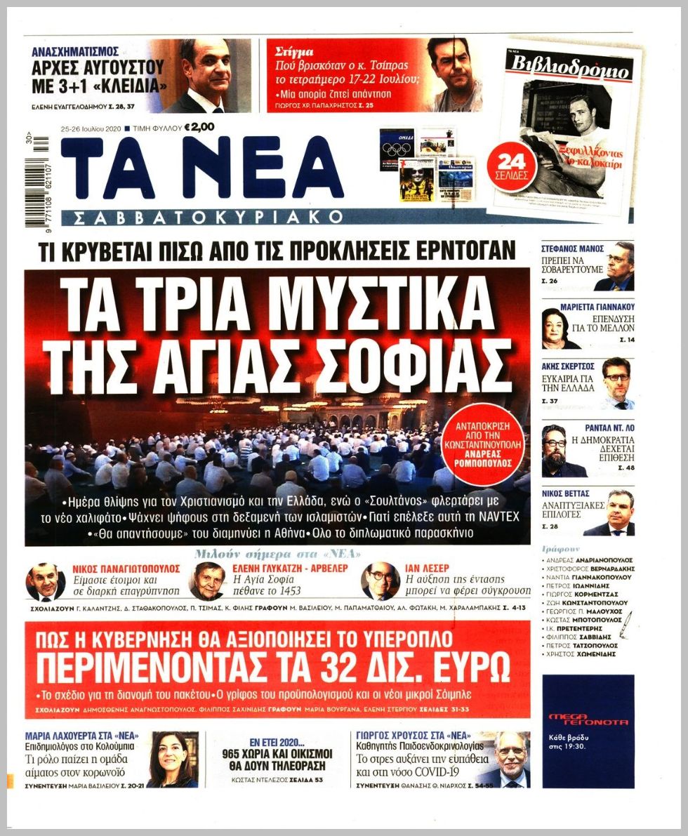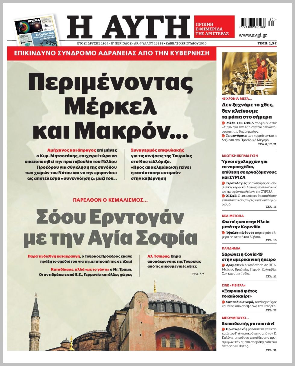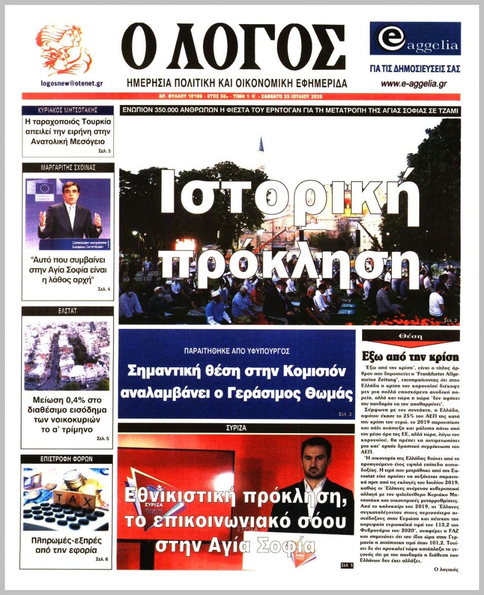 Τα πολιτικά πρωτοσέλιδα σήμερα (25/7)