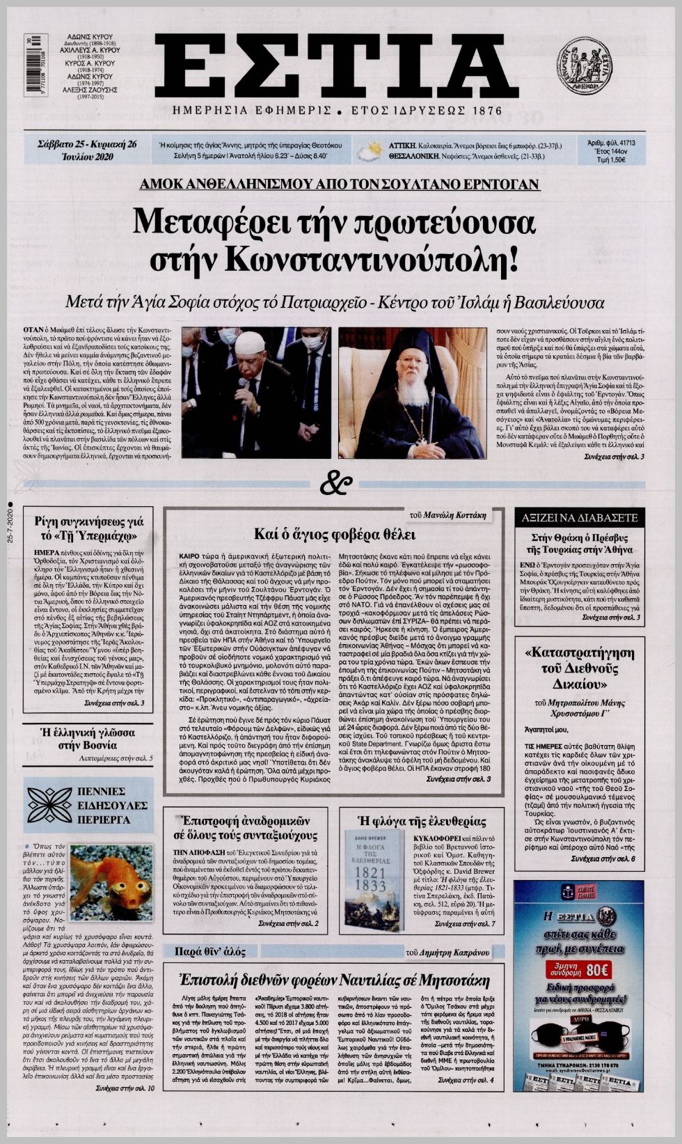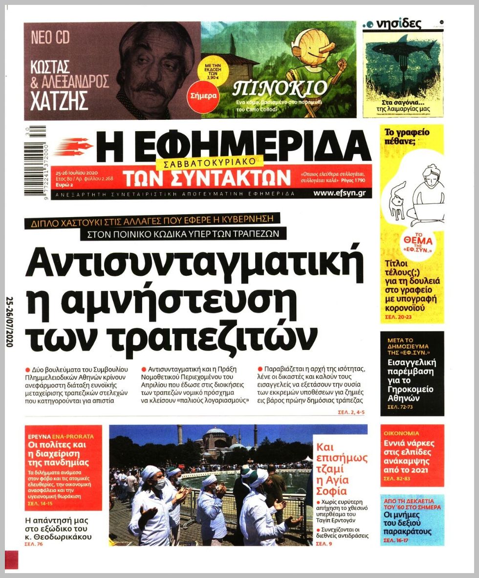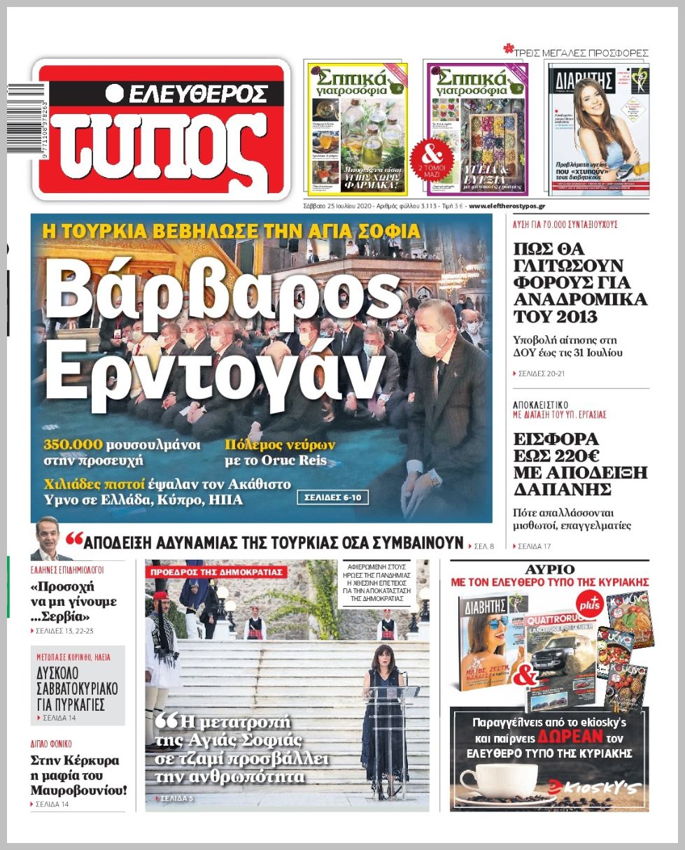 Τα πολιτικά πρωτοσέλιδα σήμερα (25/7)
