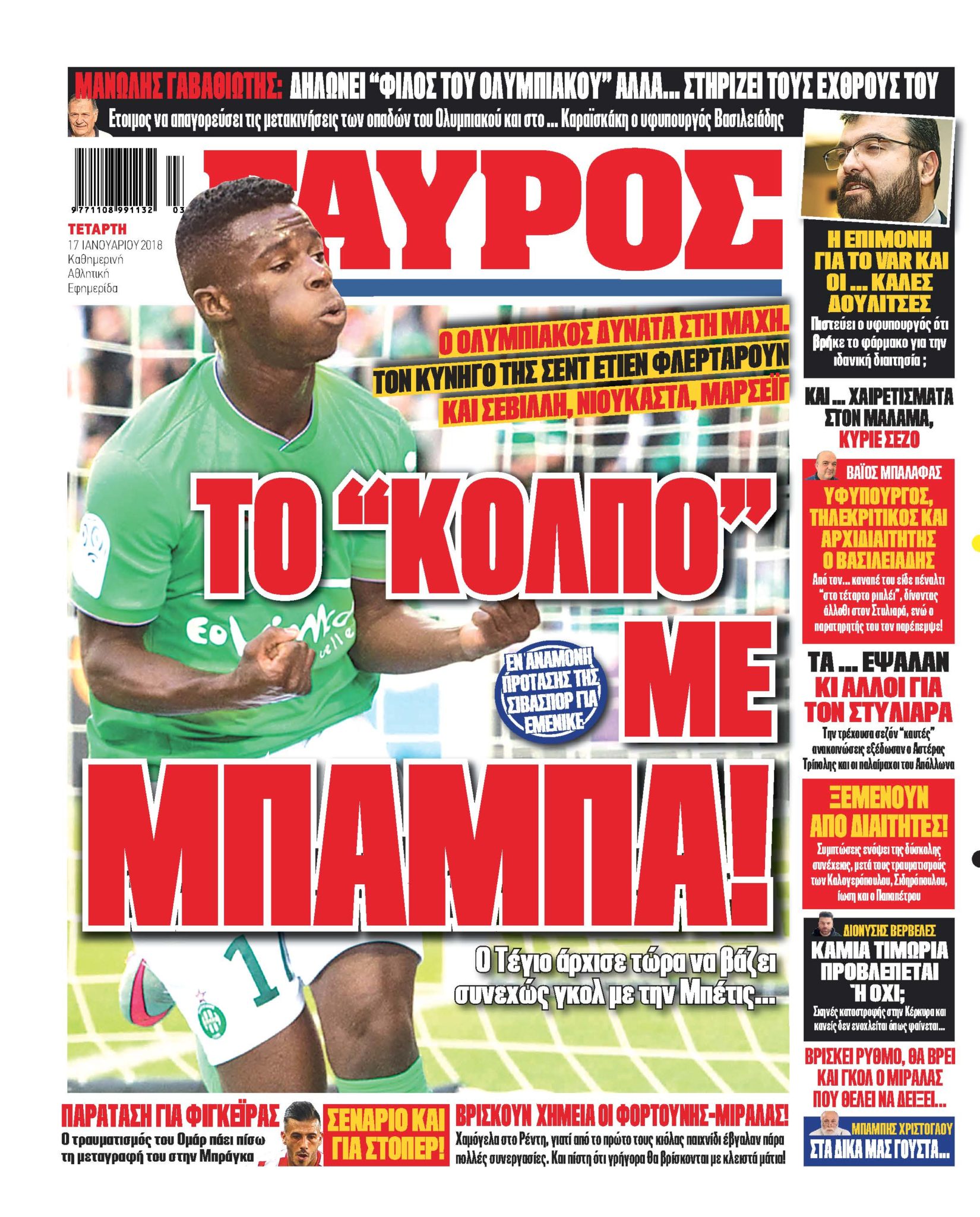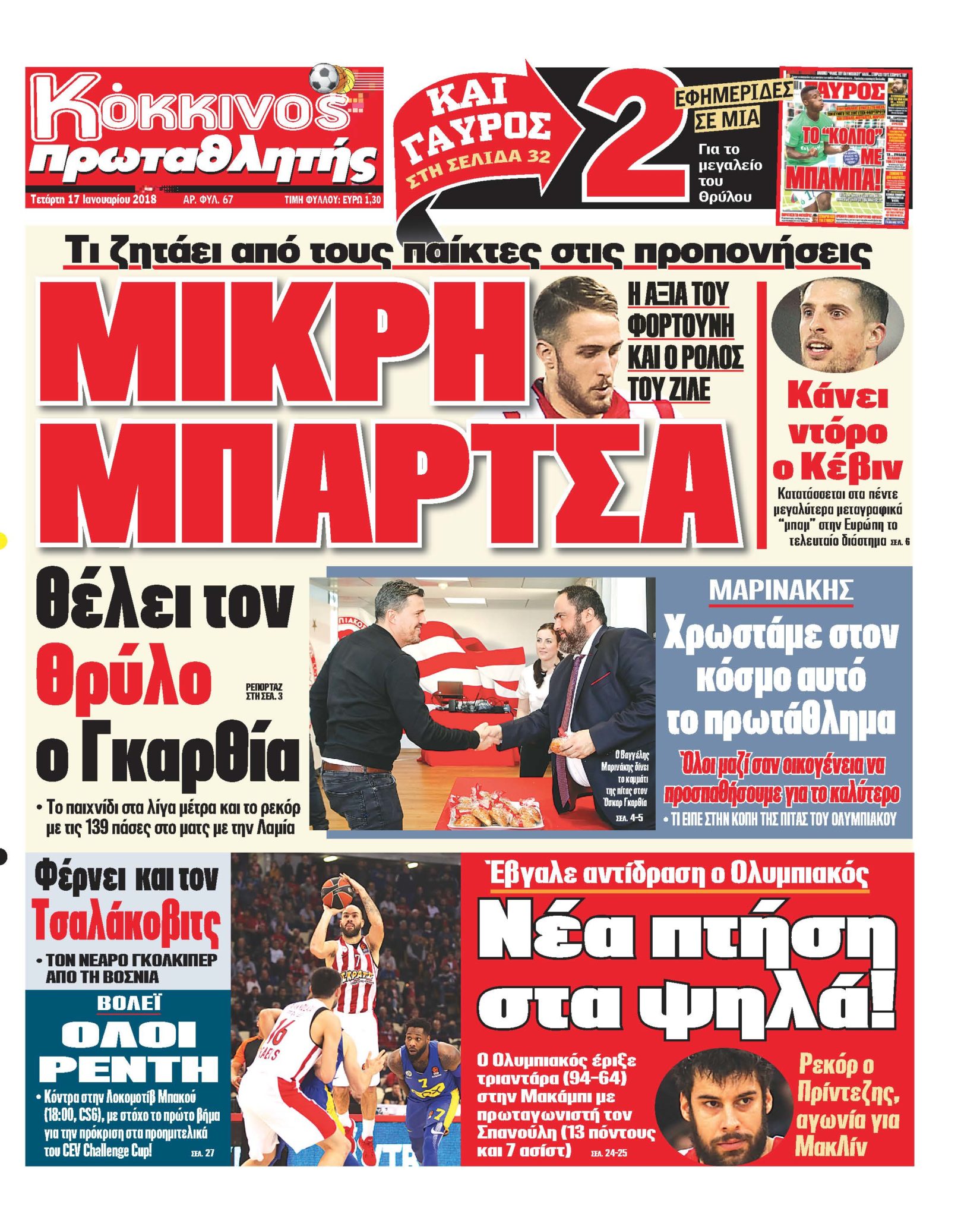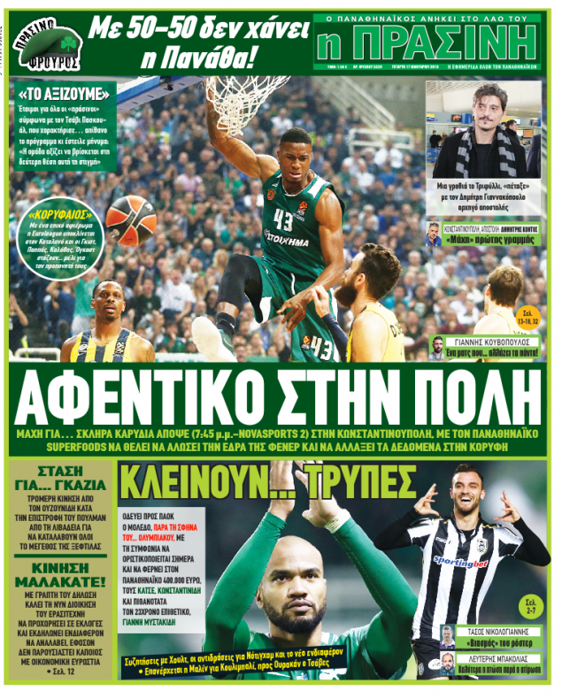 Διαβάστε τα πρωτοσέλιδα των αθλητικών εφημερίδων για σήμερα Τετάρτη (17/1).