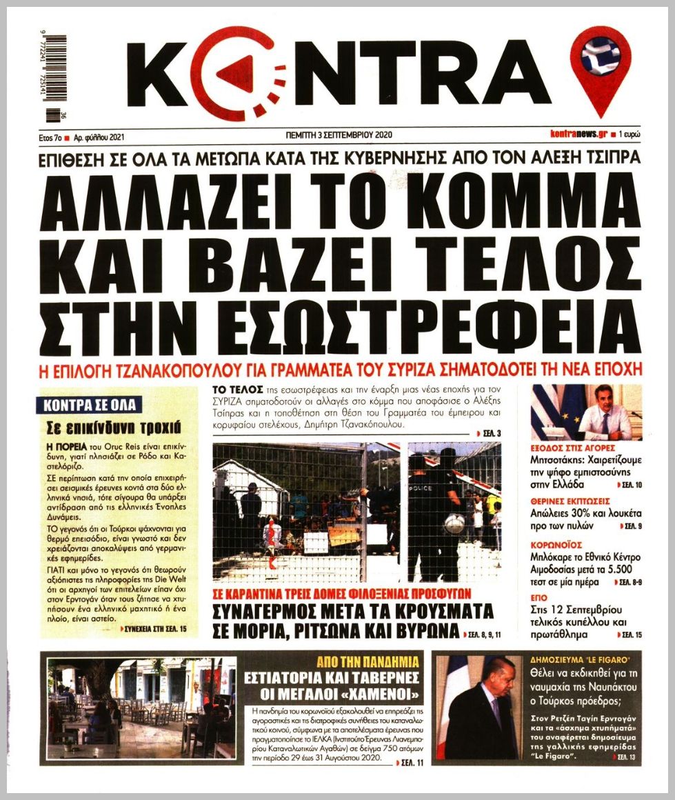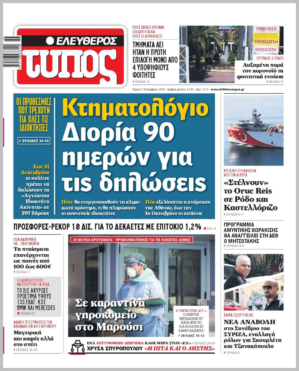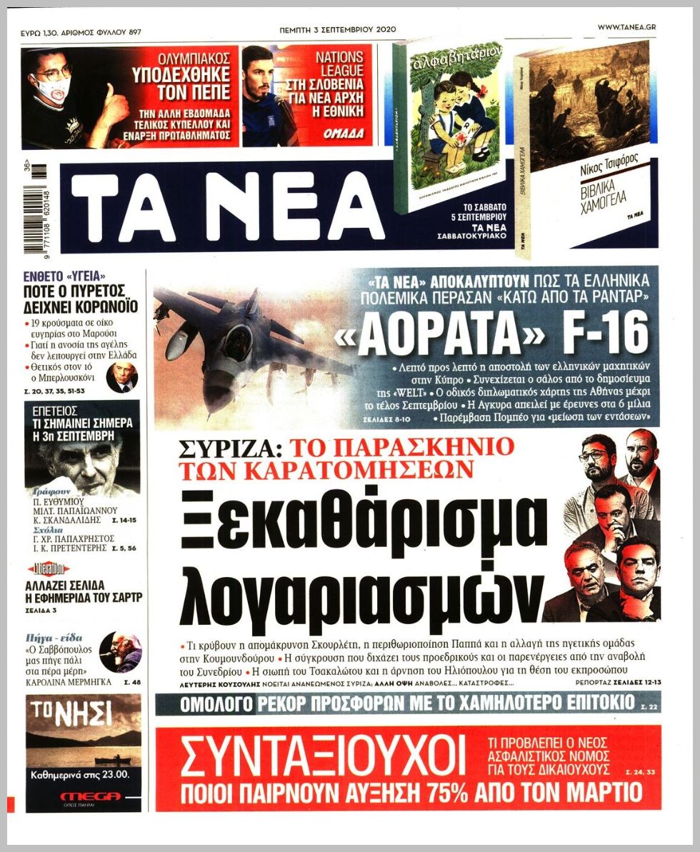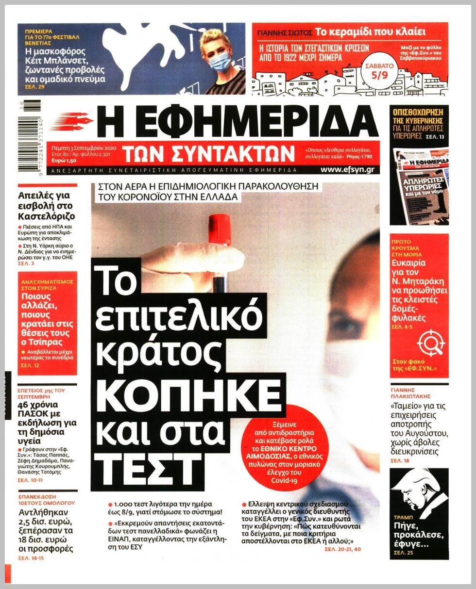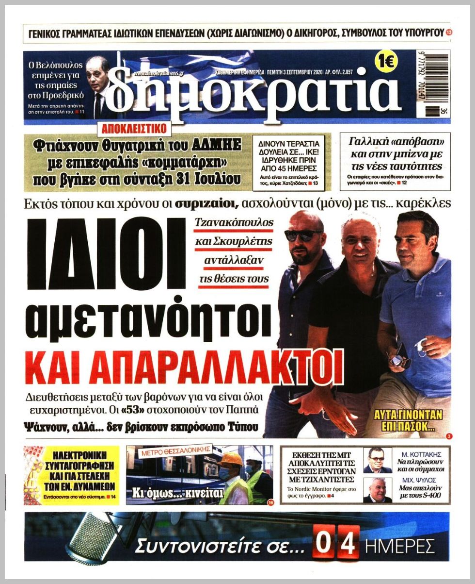 Τα πολιτικά πρωτοσέλιδα σήμερα (3/9)