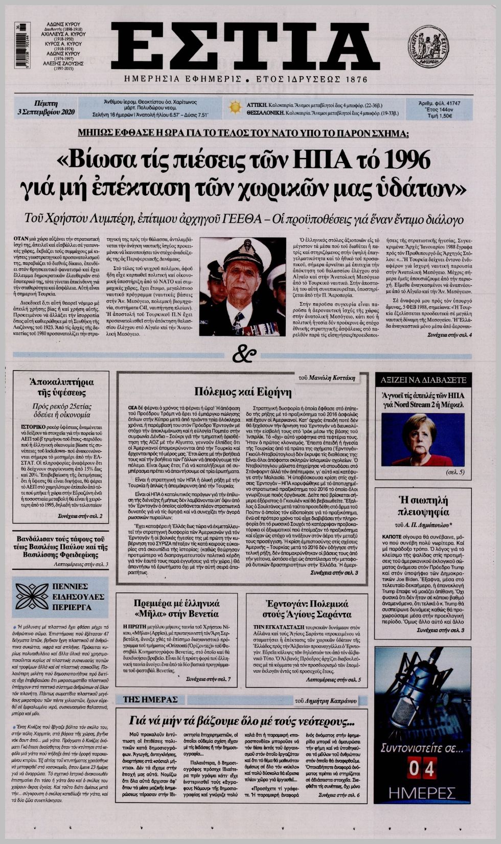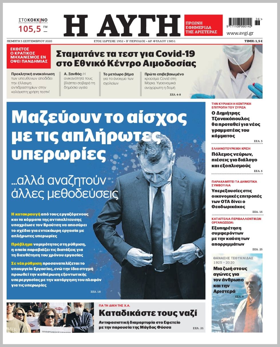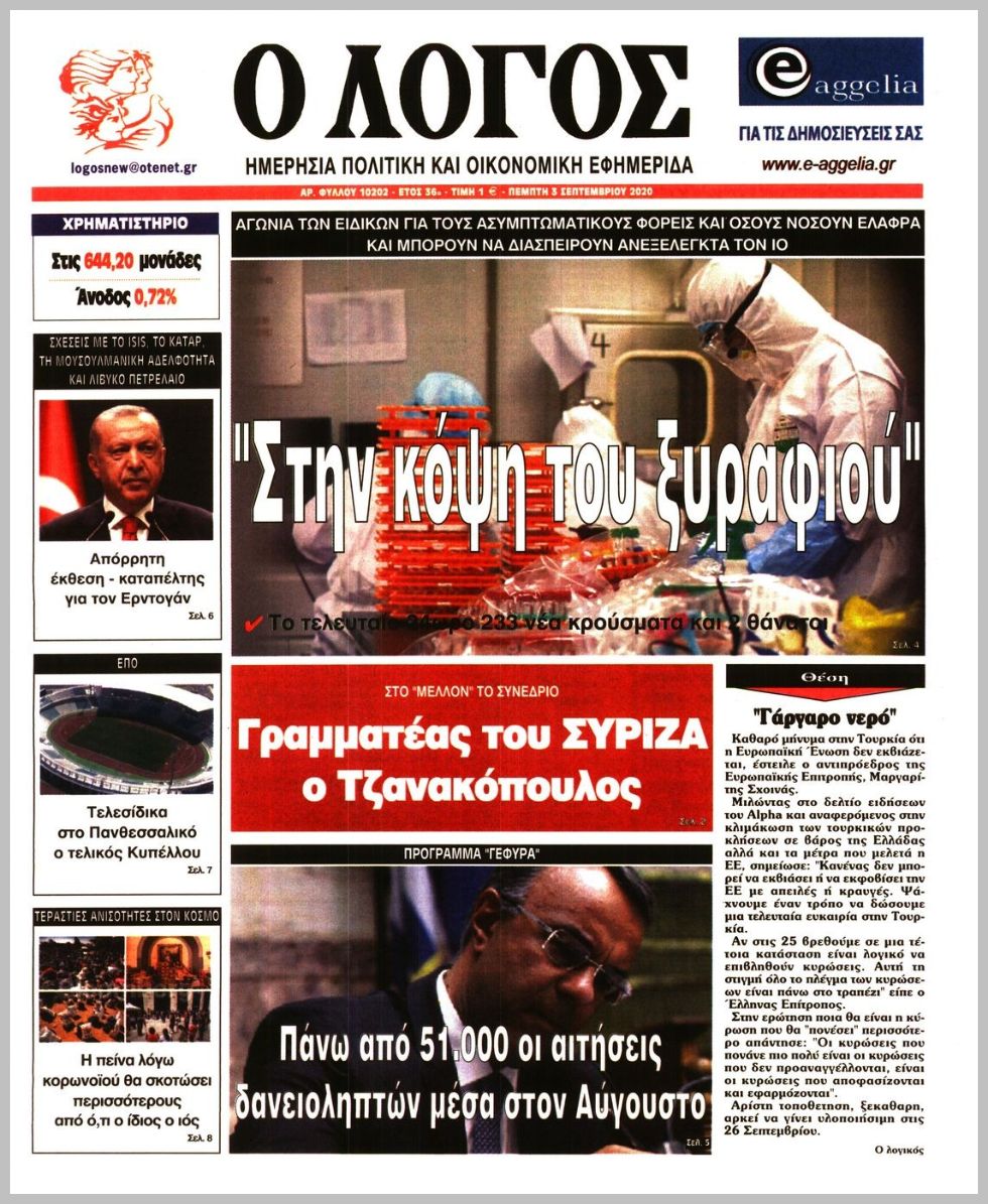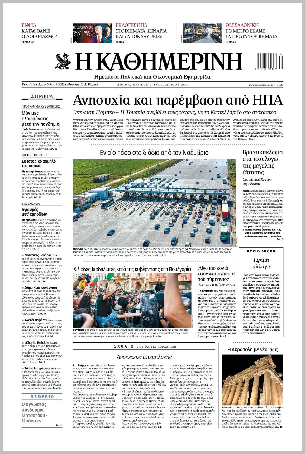 Τα πολιτικά πρωτοσέλιδα σήμερα (3/9)