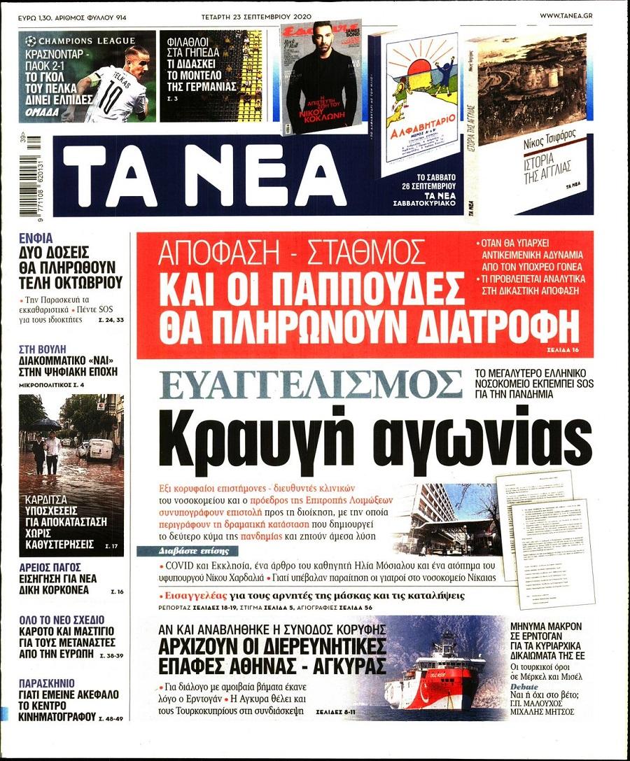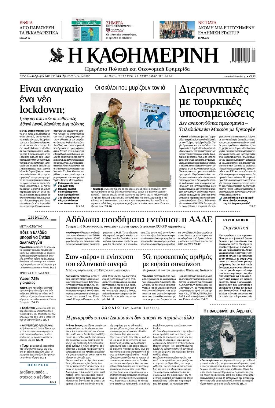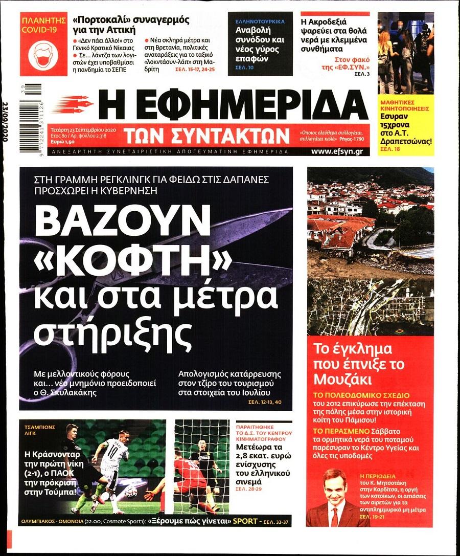 Τα πολιτικά πρωτοσέλιδα σήμερα (23/9)