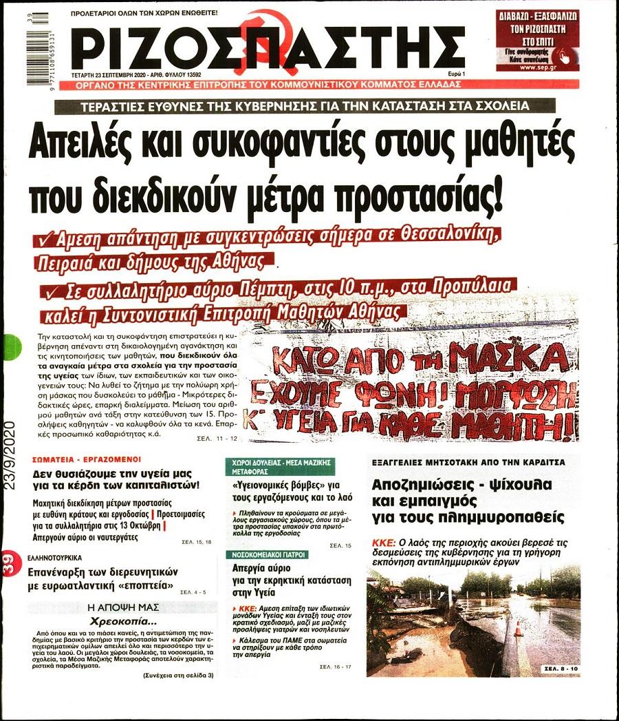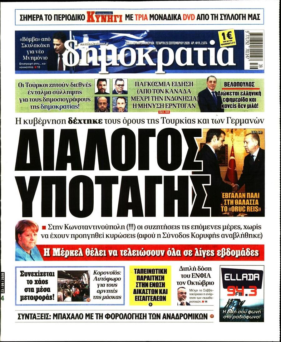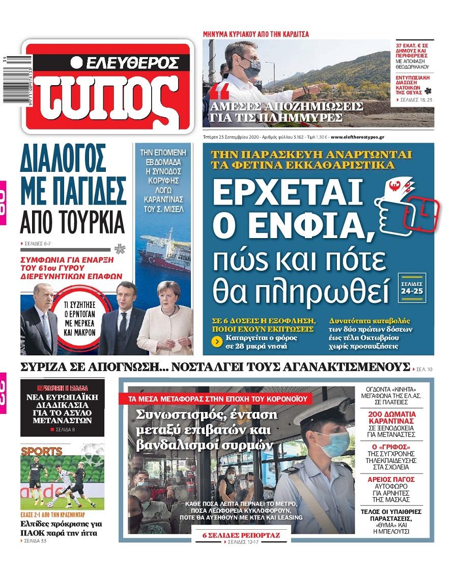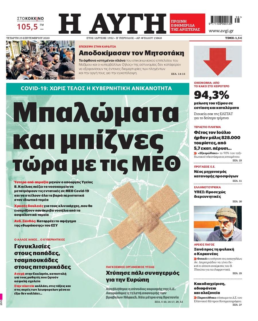 Τα πολιτικά πρωτοσέλιδα σήμερα (23/9)