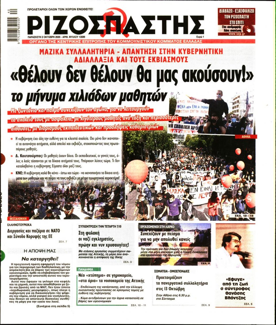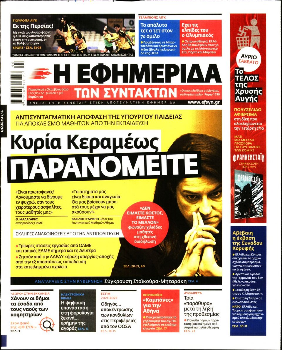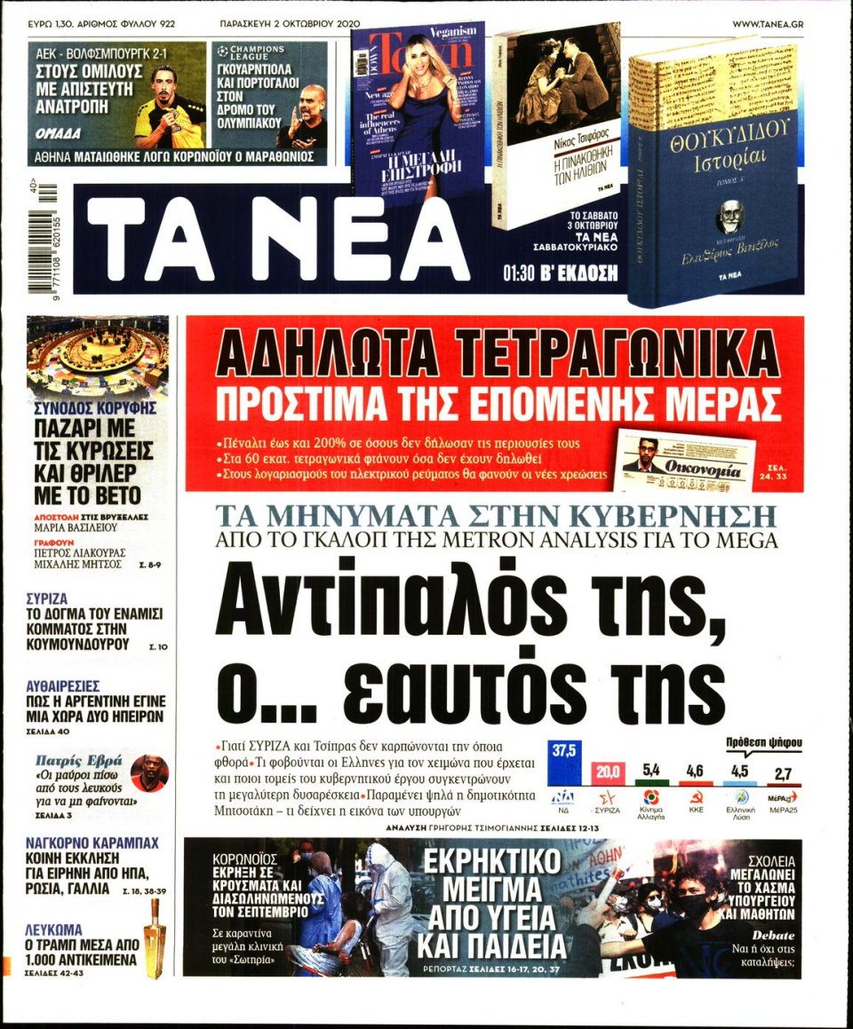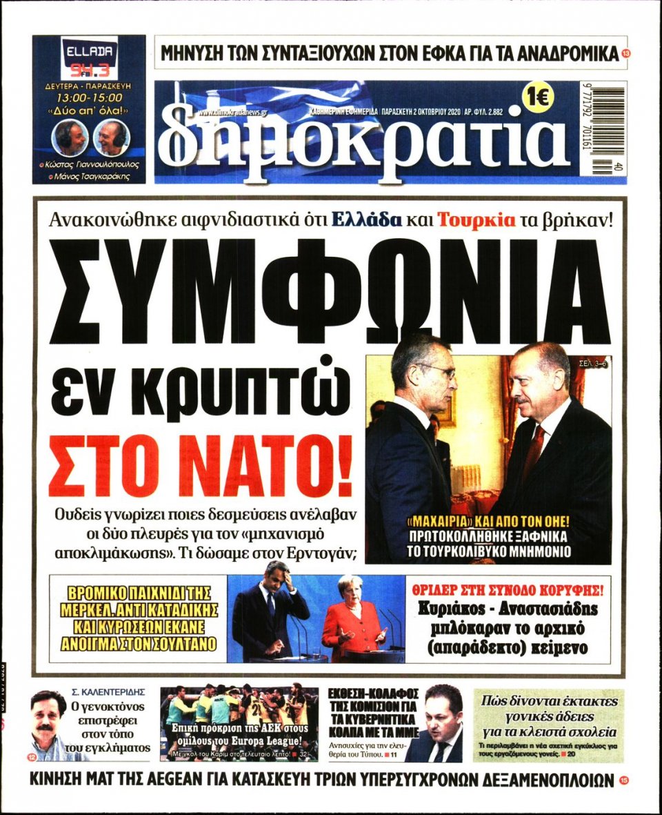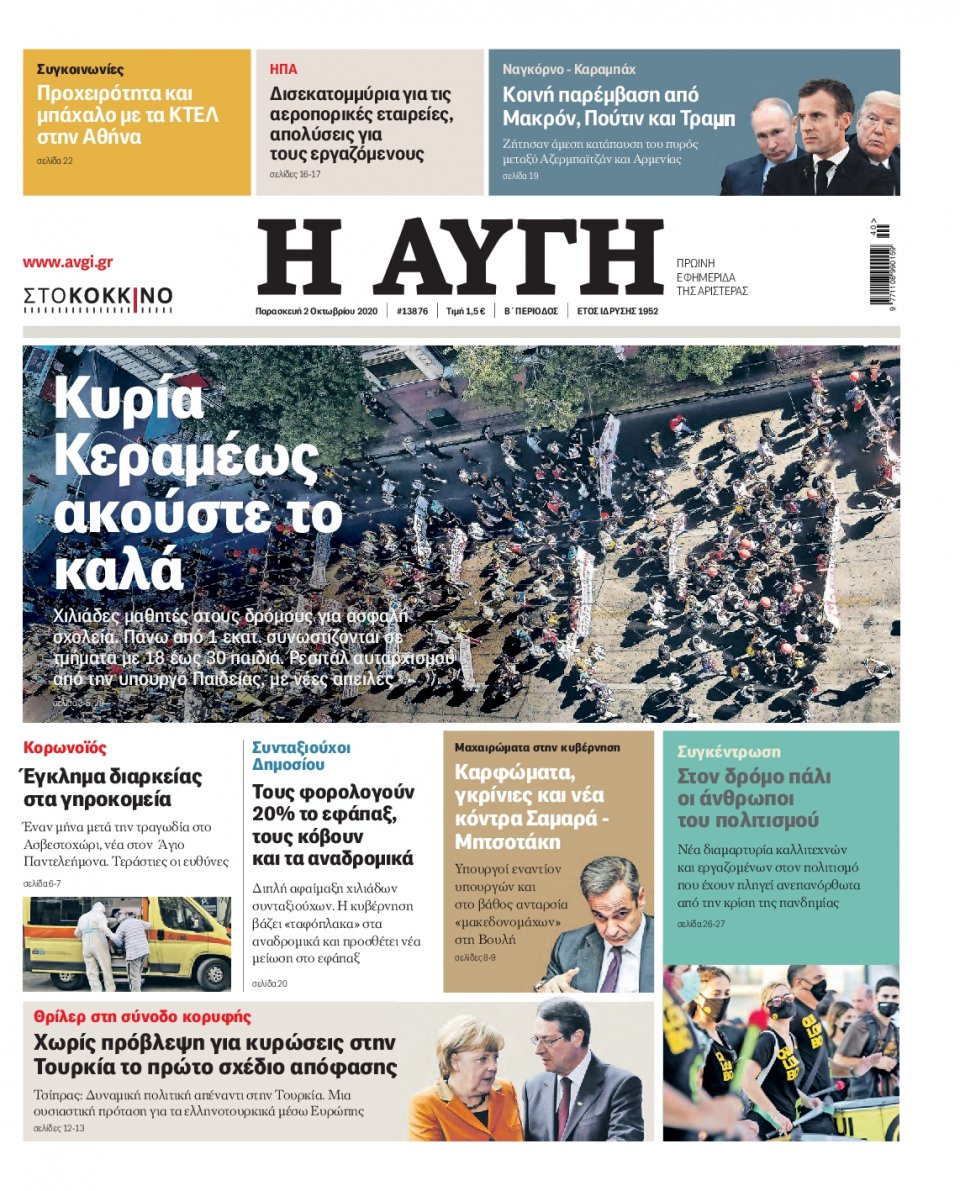Τα πολιτικά πρωτοσέλιδα σήμερα (2/10)