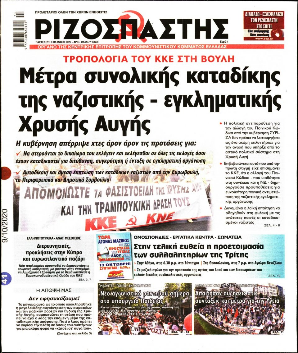 Τα πολιτικά πρωτοσέλιδα σήμερα (9/10)