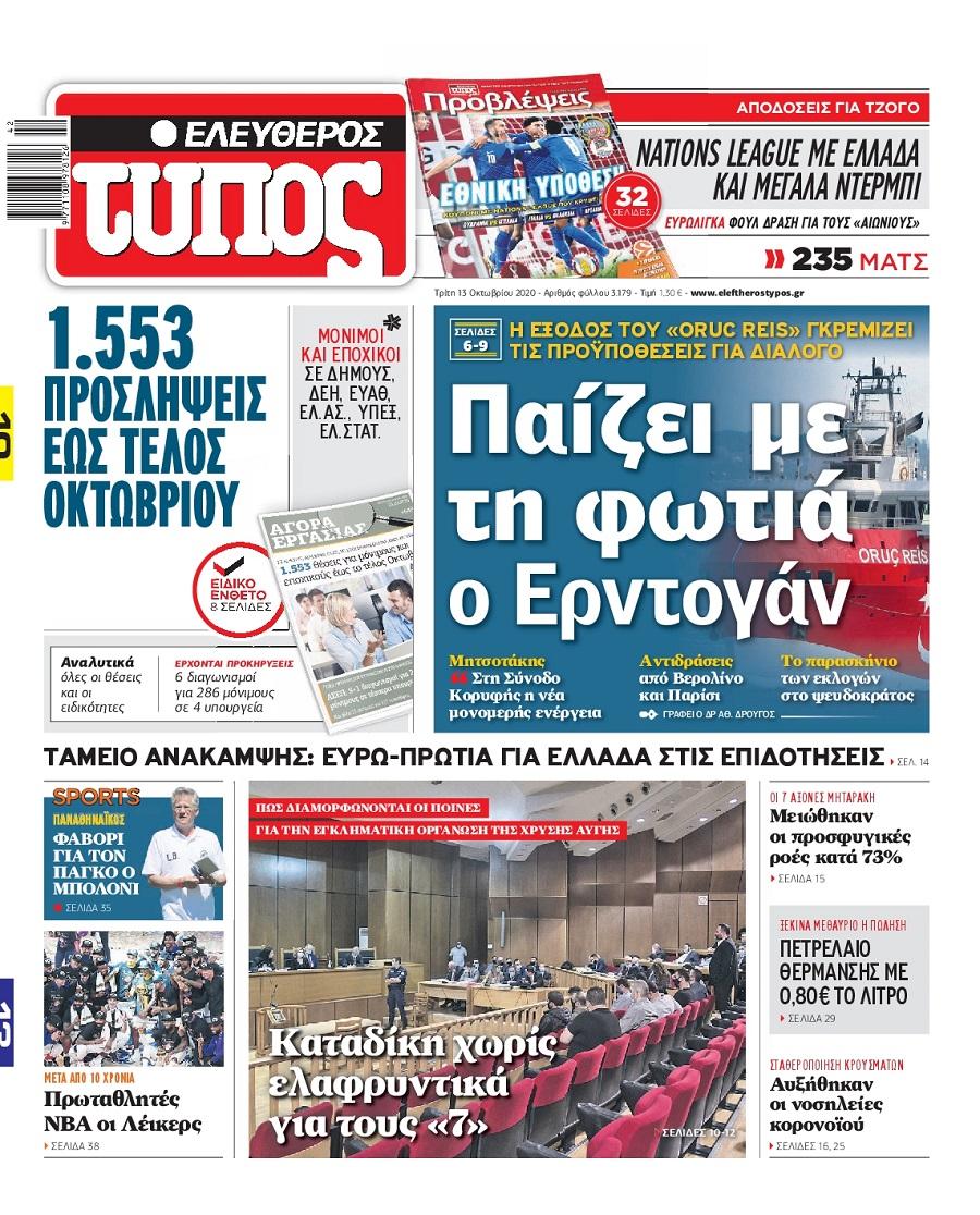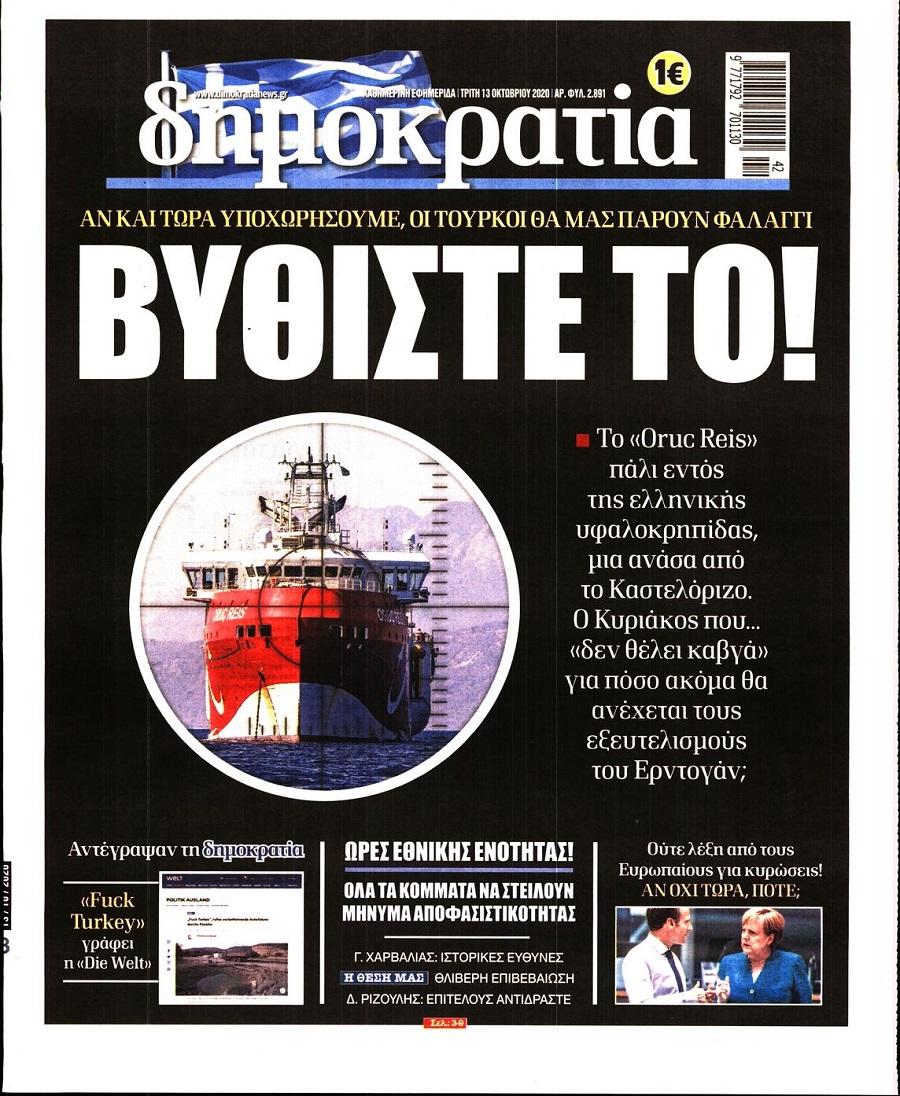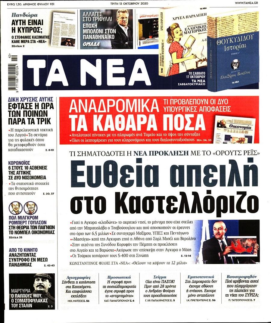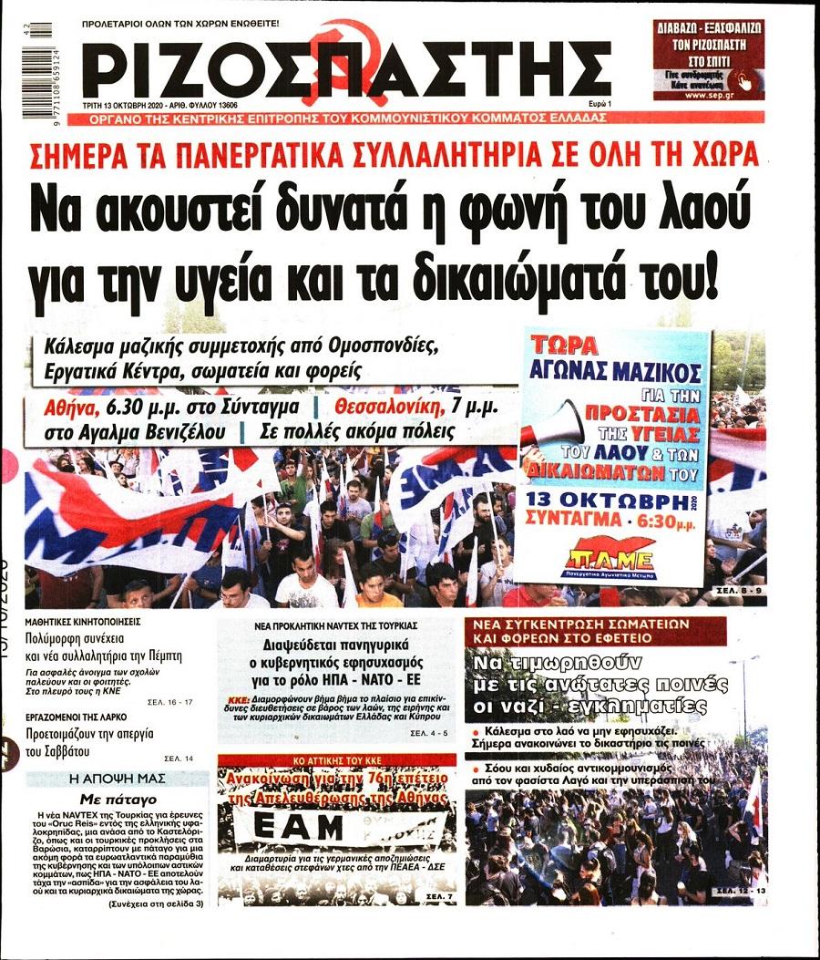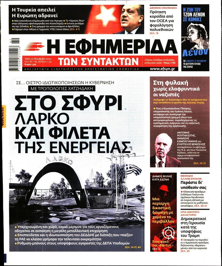 Τα πολιτικά πρωτοσέλιδα σήμερα (13/10)