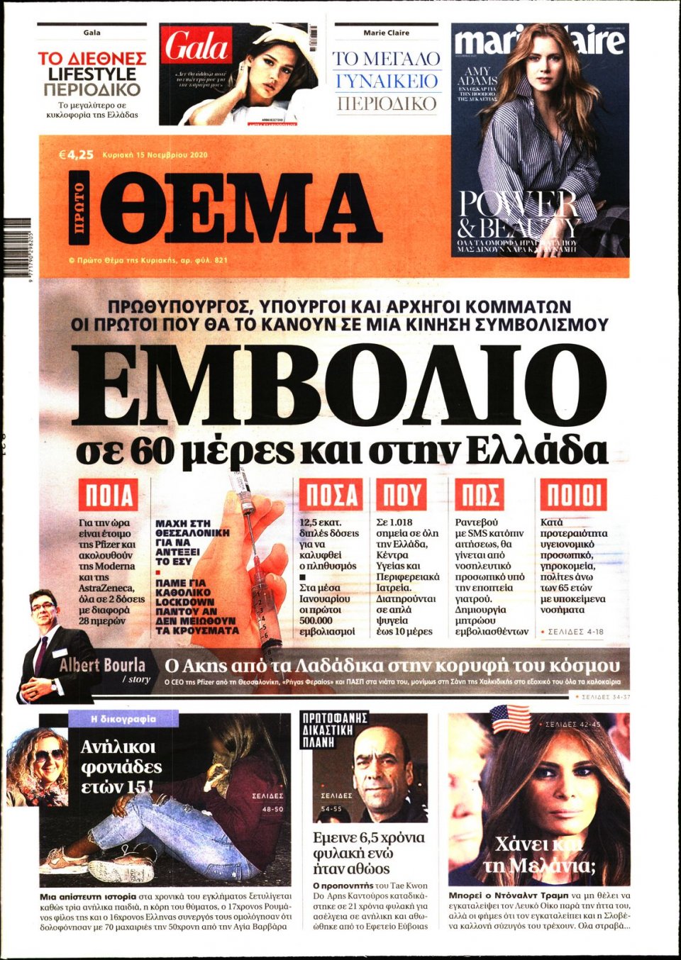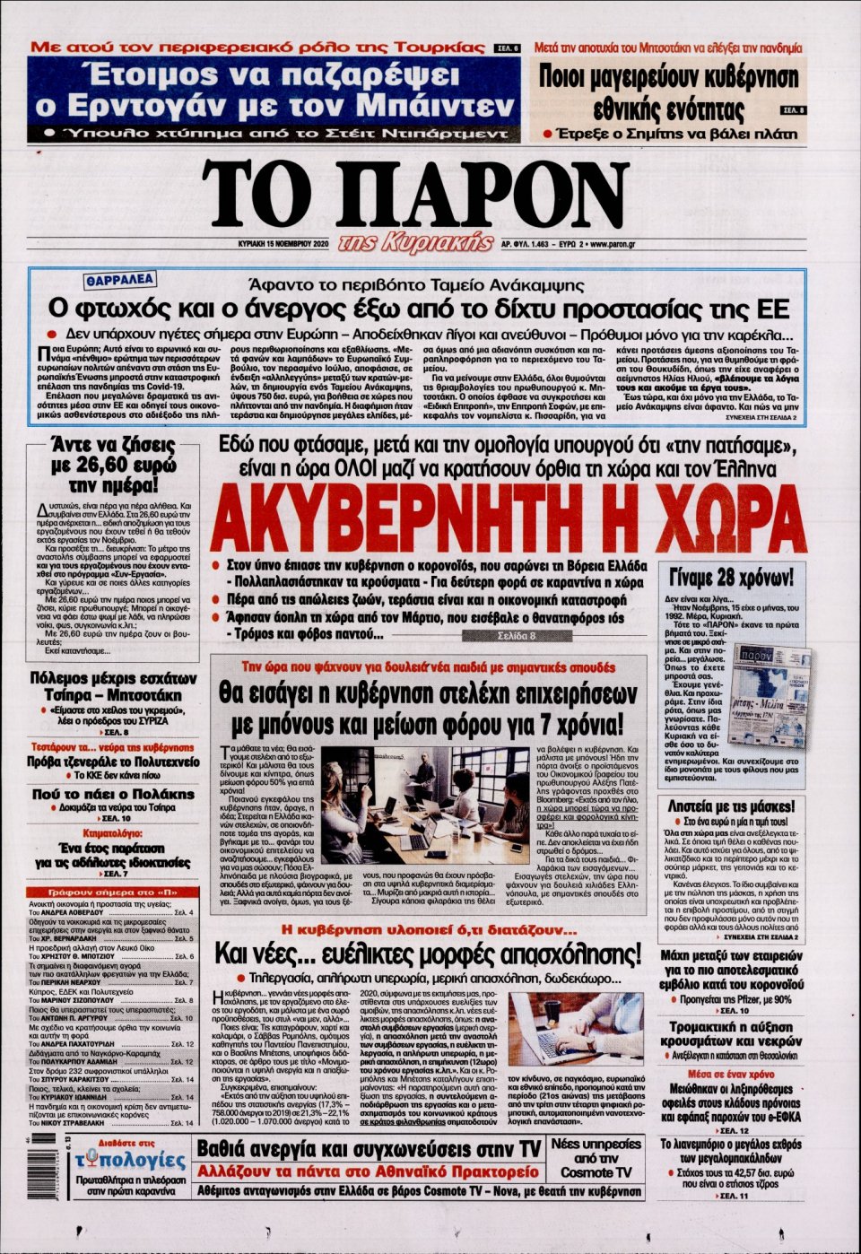 Τα πολιτικά πρωτοσέλιδα σήμερα (15/11)